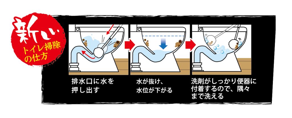 使い方は普段ご使用のトイレクリーナーと同じで、便器のふち裏や水たまりの奥を洗います。